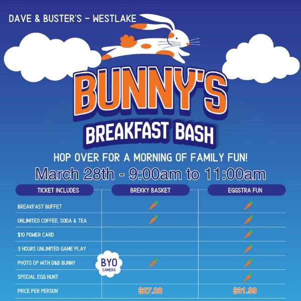 Join us for a fun-filled Easter celebration at Dave & Buster's - Westlake with our Bunny’s Breakfast Bash!