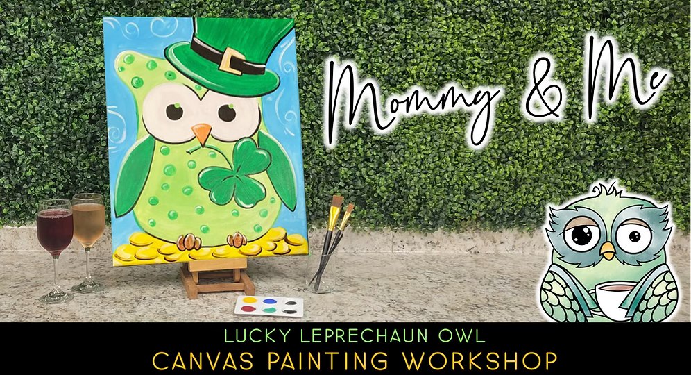 JOIN THE FLOCK for a fun morning with your little at our Mommy & Me "Lucky Leprechaun Owl" canvas painting workshop!