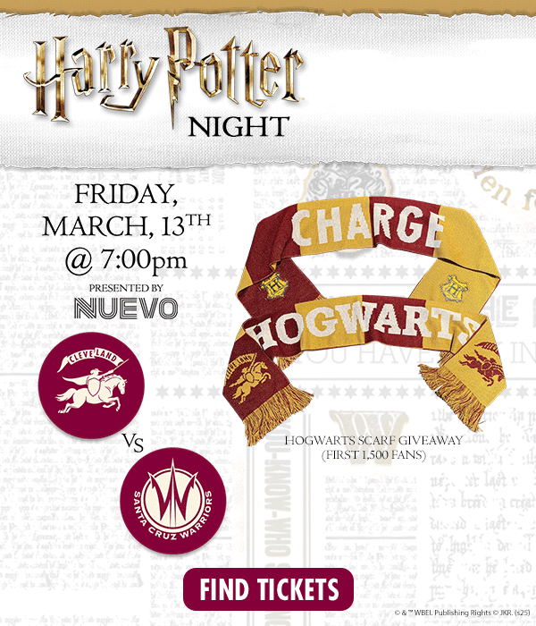 Join us for a magical night as Public Hall transforms into Hogwarts! It’s Harry Potter Night presented by Nuevo with the Cleveland Charge on Friday, March 13 at 7 p.m. The first 1,500 fans receive a Hogwarts/Charge scarf as the team tips off against the Warriors. Grab your wands and robes, hop on your broom and fly to Public Hall!